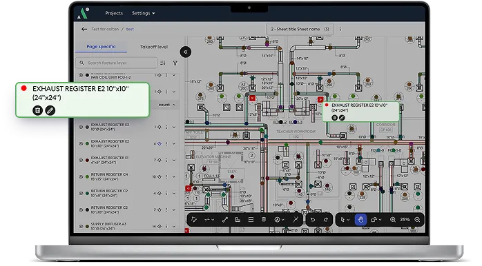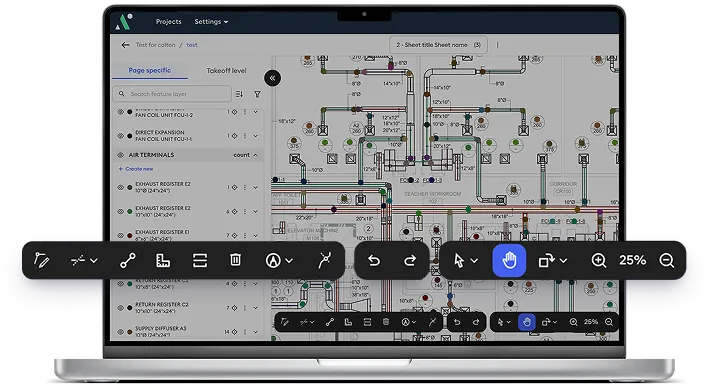 Fastest way ever to do an HVAC takeoff. Instant AI takeoffs with 90% accuracy and intuitive AI tools for faster review.